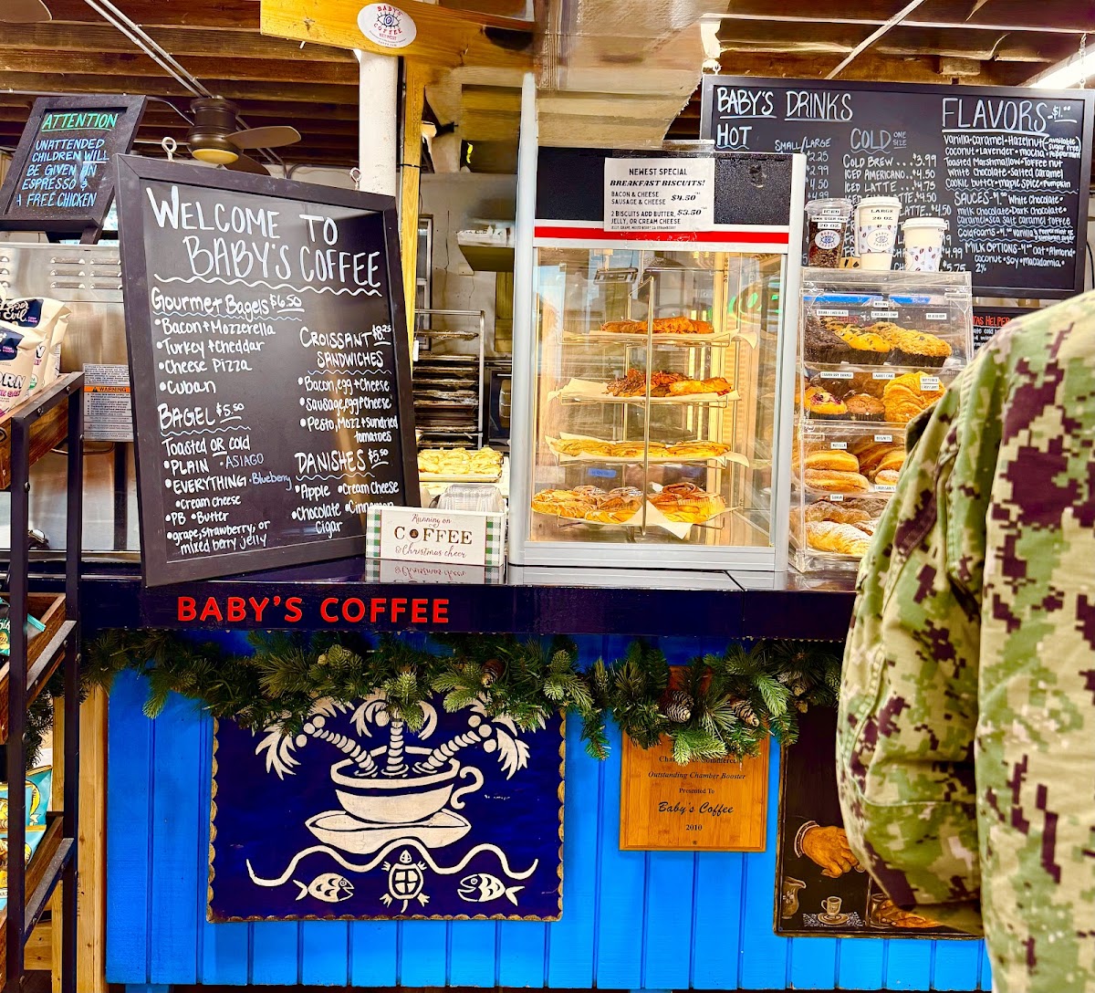 5 stars for the coffee, breakfast pastries, and Christmas ornaments. My husband came to the Florida Keys on our honeymoon- Baby’s Coffee was perfection, however the cashier was cold and rude. I thanked her and told her we came from very far away and she ignored me, coldly, and told me to “go fill up your cup there” and the coffee was sadly luke-warm temperature. Weird! …so we sat in the artsy, lounge area and enjoyed the perfect pastries. Yum